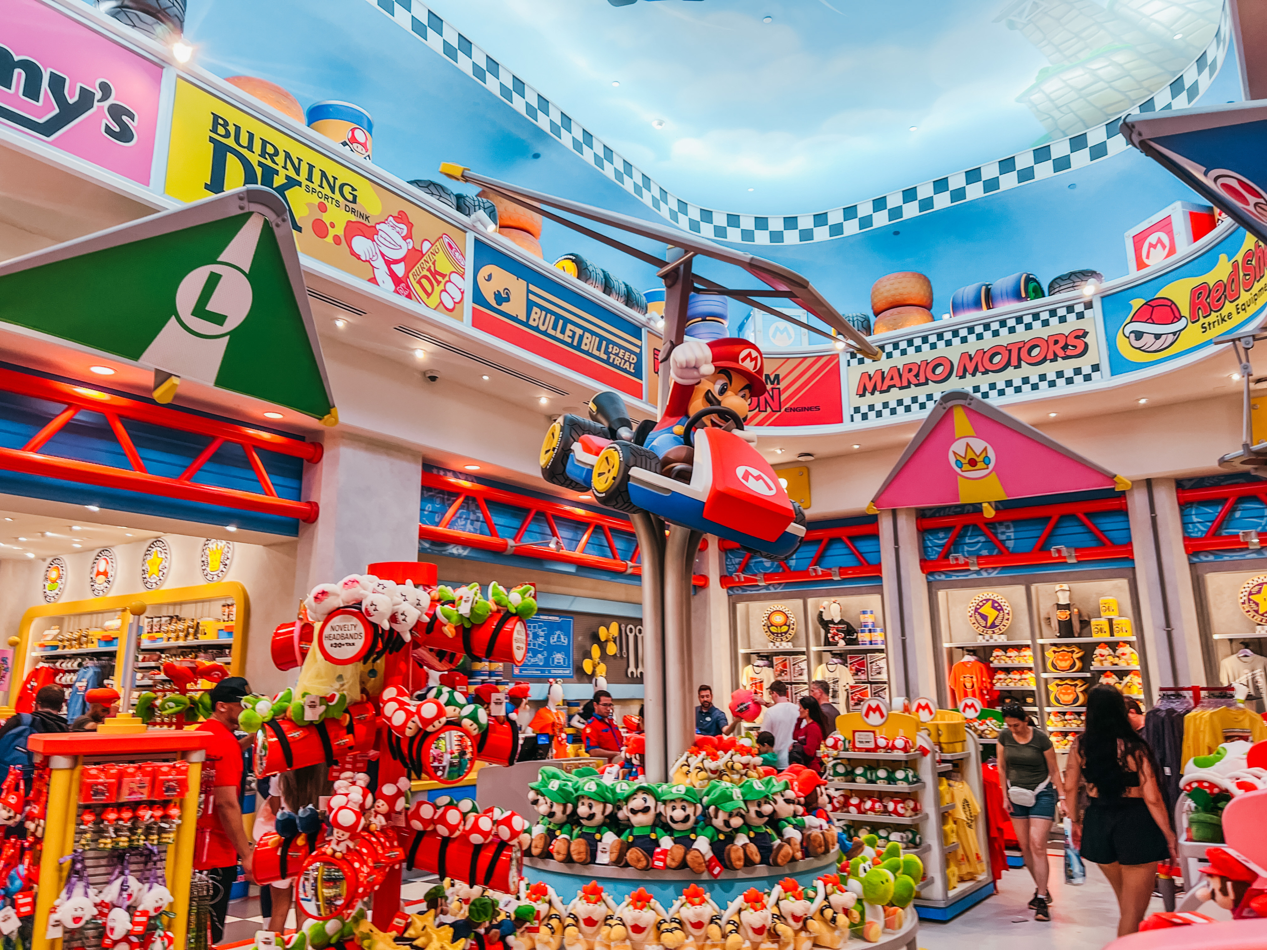 We started near Princess Peach’s Castle, which is one of the best photo spots. The design is clean and colorful, and it stands out right away. As you move further in, the space opens up into multiple levels. You’ll see: